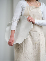 Minimalist & understated yet beautiful in its organic, artful look, the low, shallow Imagine Bowl creates impact in home decor with its large size but delicate appearance. Made from thin ceramic with a warm white matte finish, this piece with its irregular shaped rim is a stunning base for styling with bowl fillers or even serving food while bringing dimension & style to any surface.
