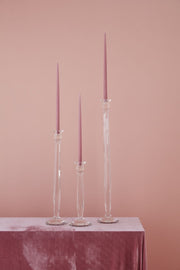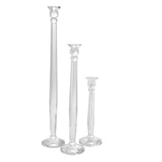 Design a classy event or a vintage-inspired wedding with the traditional crystal Interlude Candlestick. The handmade crystal features surface texture for dimension & interest, a wide foot, & stunning height that layers well with other crystal candelabras & silver, gold, or Lucite decor. Perfectly sized to hold a standard taper candle, this piece adds a timeless elegance & drama to weddings & events.