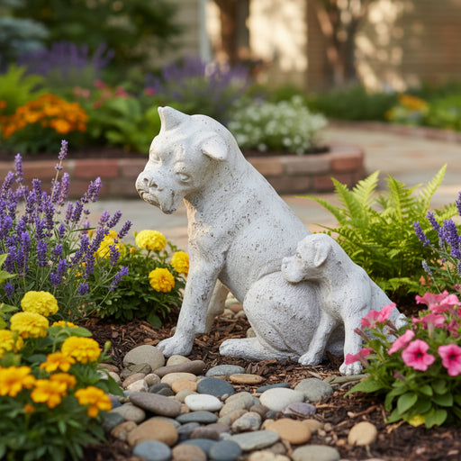 Boxer Dog and Pup Garden Statue (13.5-Inch)