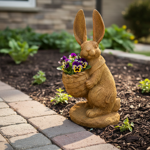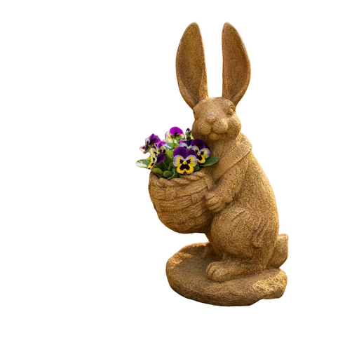 Rabbit with Basket Garden Statue (14.5-Inch)