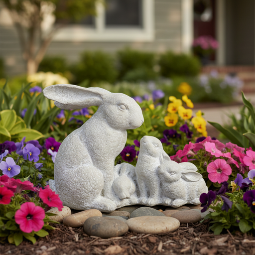 Rabbit and Bunnies Garden Statue (11-Inch)