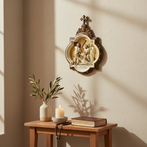 View full detailsAbout This Statue The Station #2 Chapel Wall Plaque is a 19-inch Catholic statue made from fiberglass. This beautifully crafted piece brings the St...
