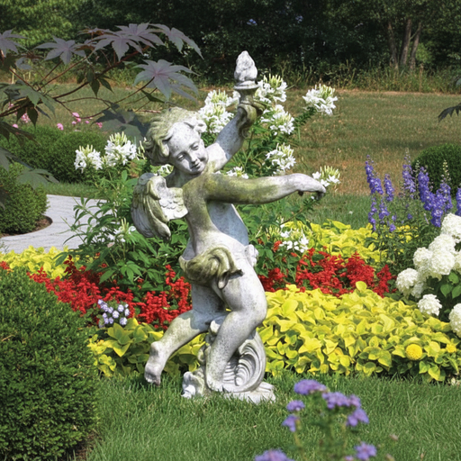 Dancing Cherub with Torch Garden Outdoor Statue (43-Inch)