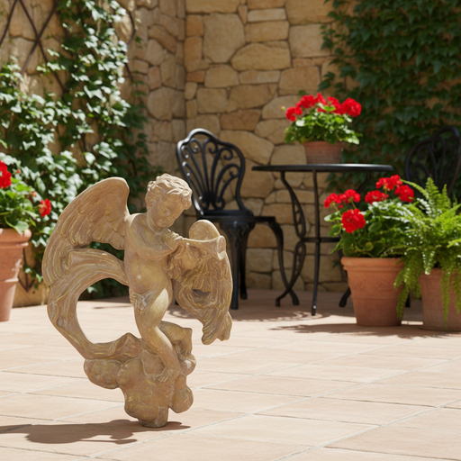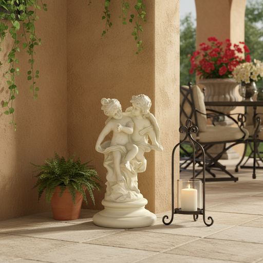 Winged Cherubs Playing Outdoor Statue (16-Inch)