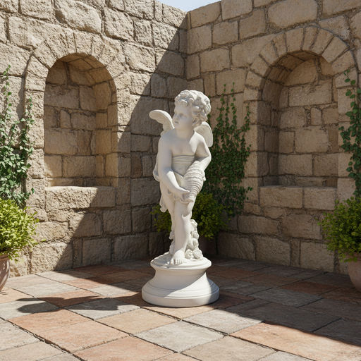 Cherub Holding Shell Outdoor Statue (24-Inch)