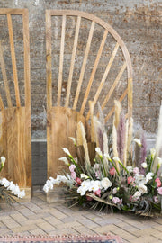 With impeccable craftsmanship and warm wood grain, the Arbor Gateway offers the perfect wedding decor for the bohemian globetrotter and stylish homebody alike. Reminiscent of sunbeams, the lines reflect just the right aesthetic for a statement-making backdrop or showstopping entrance at your next big event.