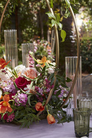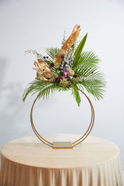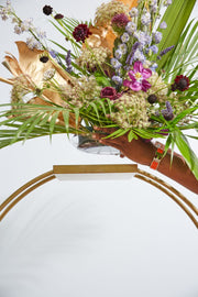 Set the table with flair & flourish with the Leggero Stand, made from matte gold metal with plates on the top & base for arranging florals or candles. A double ring structure allows for wrapping greenery or vines for endless styling possibilities.