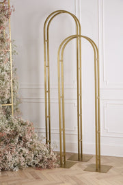 Floral moments big and small are easy to achieve with the Melora Arch, a narrow metal structure crafted from square tubing, allowing for easy floral mechanic attachment. Available in 2 heights, each Melora comes with 2 bases and can be easily assembled and broken down for compact transport to an event.